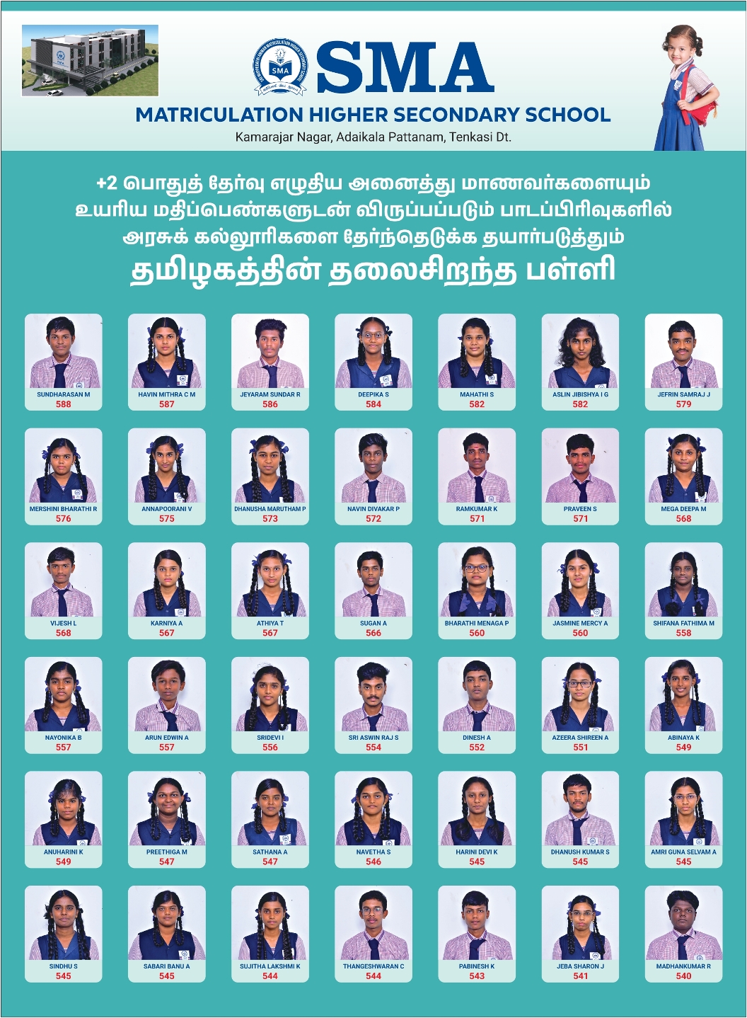 Ponnammal Educational Trust was founded by Correspondent Mr G. Rajasekaran in the name of his grandmother Mrs. Ponnammal.The founder firmly believes that “Education is simply the soul of a society as it passes from one generation to another”. That was when SMA Matriculation Hr Sec School was born out of his feelings to serve in 2010 . His vision of providing “Value & Skill based Education” made him adventurous all through. Mr.Rajasekaran helped the students explore their own potential and made them realize that education, hard work, dedication and commitment to the nation .Providing the young minds with the vibrant environment for studies has always been his top priority. His personality has all the nuances of a great human being and his relentless work drove him to success .